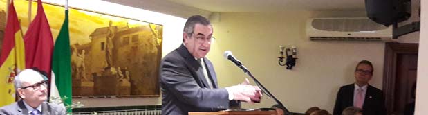 Con una presentación del acto por parte de la Secretaría General de la Casa, se dio la palabra al Vicepresidente de Cultura de nuestra Asociación, Don Carlos Mora Hervías, quien a su vez presentó a Don Pedro Centeno que nos explicó, de manera clara y precisa, los fundamentos históricos de nuestro escudo.